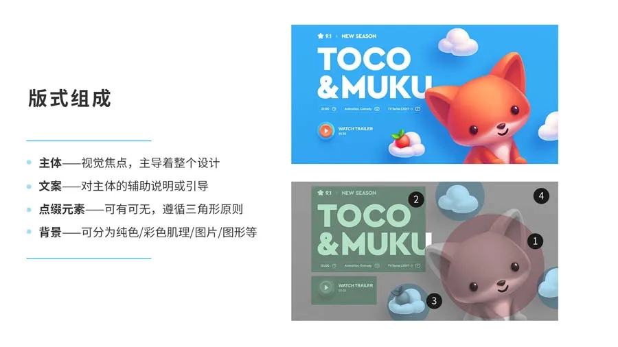 4. 背景——可分為純色/彩色肌理/圖片/圖形等。