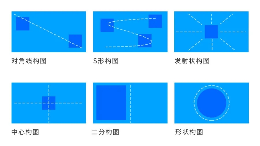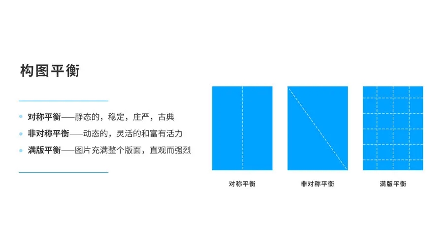 非對(duì)稱在不對(duì)等的元素間創(chuàng)設(shè)出秩序和平衡,非對(duì)稱設(shè)計(jì)由于版式不可預(yù)見,所以空間是變化的。特點(diǎn)是動(dòng)態(tài)的,靈活的和富有活力。非對(duì)稱構(gòu)圖比較多,常見的有以下6種形式。