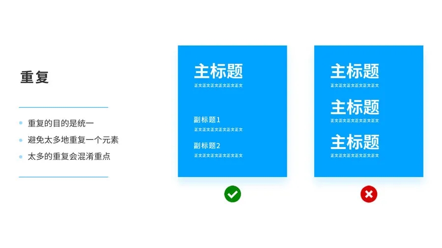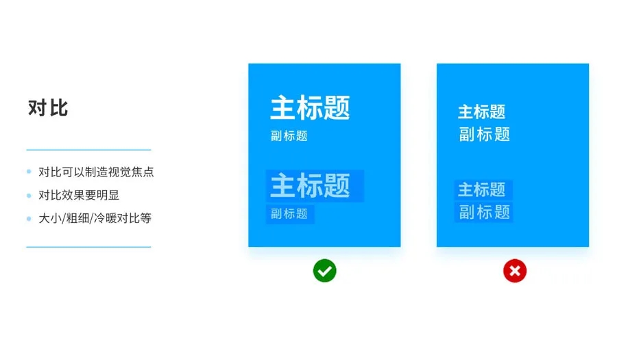 不管是哪種對比,當你期望對比效果有效的話,需要大膽一些,明顯一些,不要拿12號和13的文字做大小對比,這是沒有任何意義的,不要畏畏縮縮,做設(shè)計也是一樣。