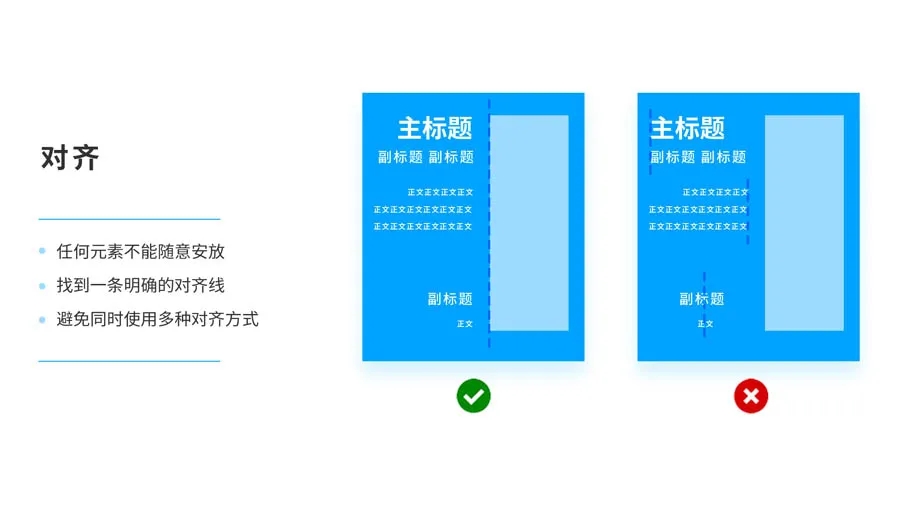任何元素都不能在版面上隨意安放。每一項都應(yīng)當與頁面上的某個內(nèi)容存在某種視覺聯(lián)系。在版面上找到可以對齊的元素,盡管它們可能距離比較遠。需要注意的地方是避免同時使用多種對齊方式。