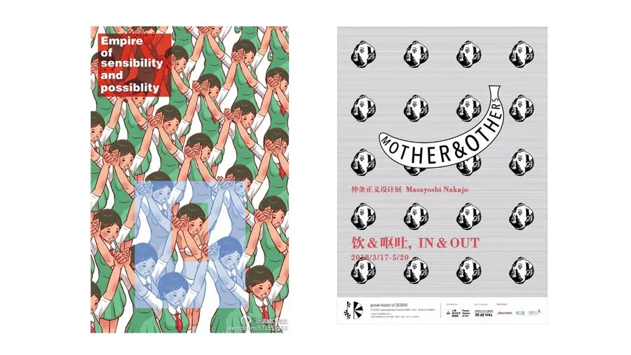 這個具有沖擊感的形象其實和這次展覽主題“飲&嘔吐”呼應(yīng)的,設(shè)計師想表達仲條正義的創(chuàng)作于人生,正如這個重復的形象,不斷吸收,不斷推翻,最后不斷創(chuàng)造。