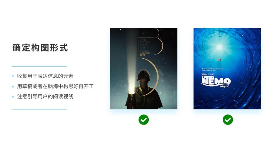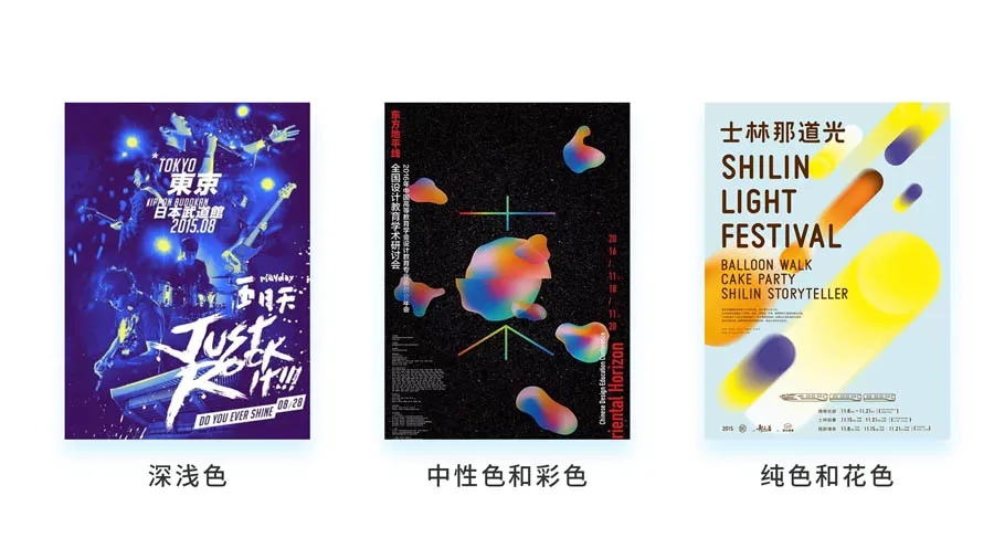 這里的深淺指的是黑白灰對比的重和輕,一般來說,色大而深顯得比較重要,色小而淺顯得比較次要,我們可以看一下前面講構(gòu)圖那塊展示的海報(bào)黑白版,會發(fā)現(xiàn)這個規(guī)律更加明顯。