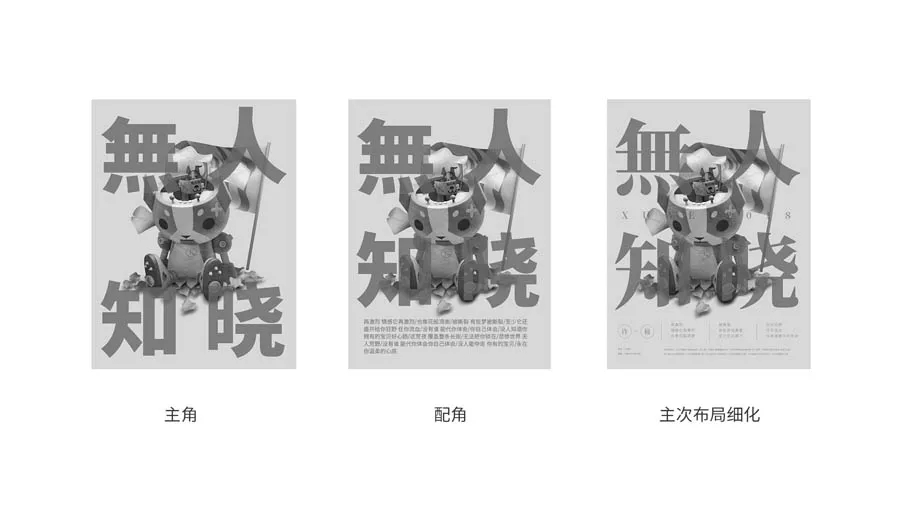 在開始動手做之前我就想好了這次想做一個視覺直觀而強(qiáng)烈的海報(bào),再加上主體是文案和素材的結(jié)合,所以我才采用了滿版構(gòu)圖。在黑白灰中將主角和配角的位置確定好,再去調(diào)整字體和距離。