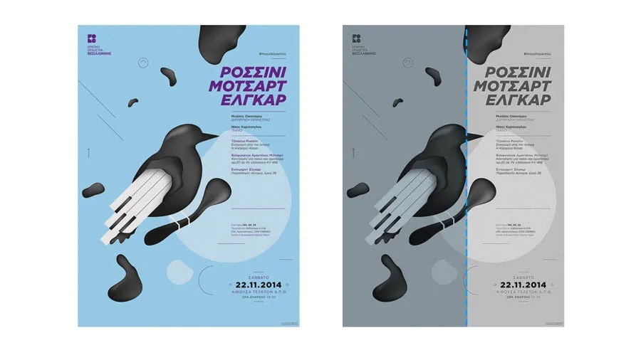 文案擺放在版面的對角線(xiàn)方向,一方面避免了司空見(jiàn)慣的居中版面,一方面給中心主體留出了更多的創(chuàng )作空間;另外中心的圖形也可以是對角線(xiàn)的設計,這樣會(huì )讓整個(gè)構圖看起來(lái)比較平衡。
